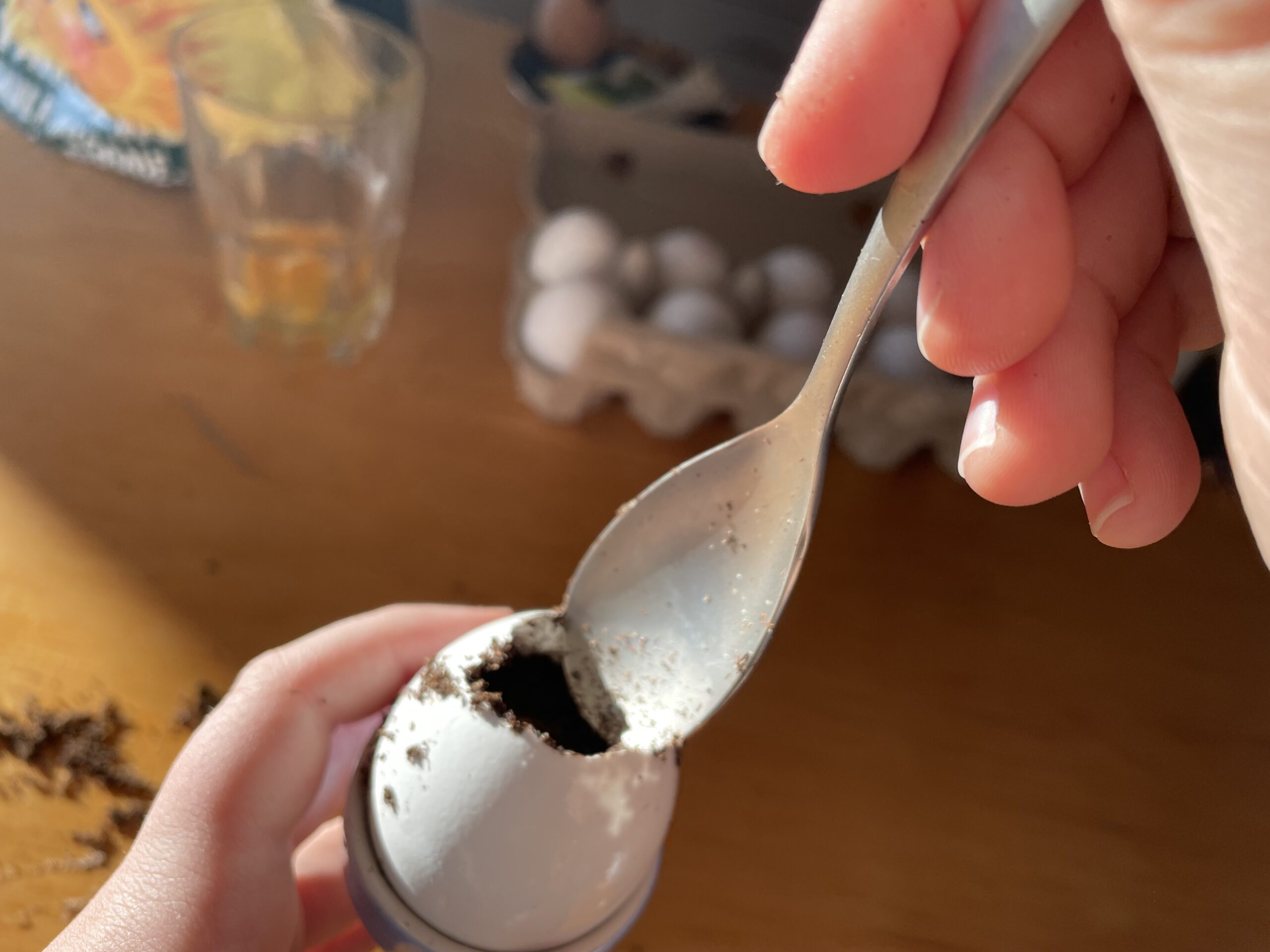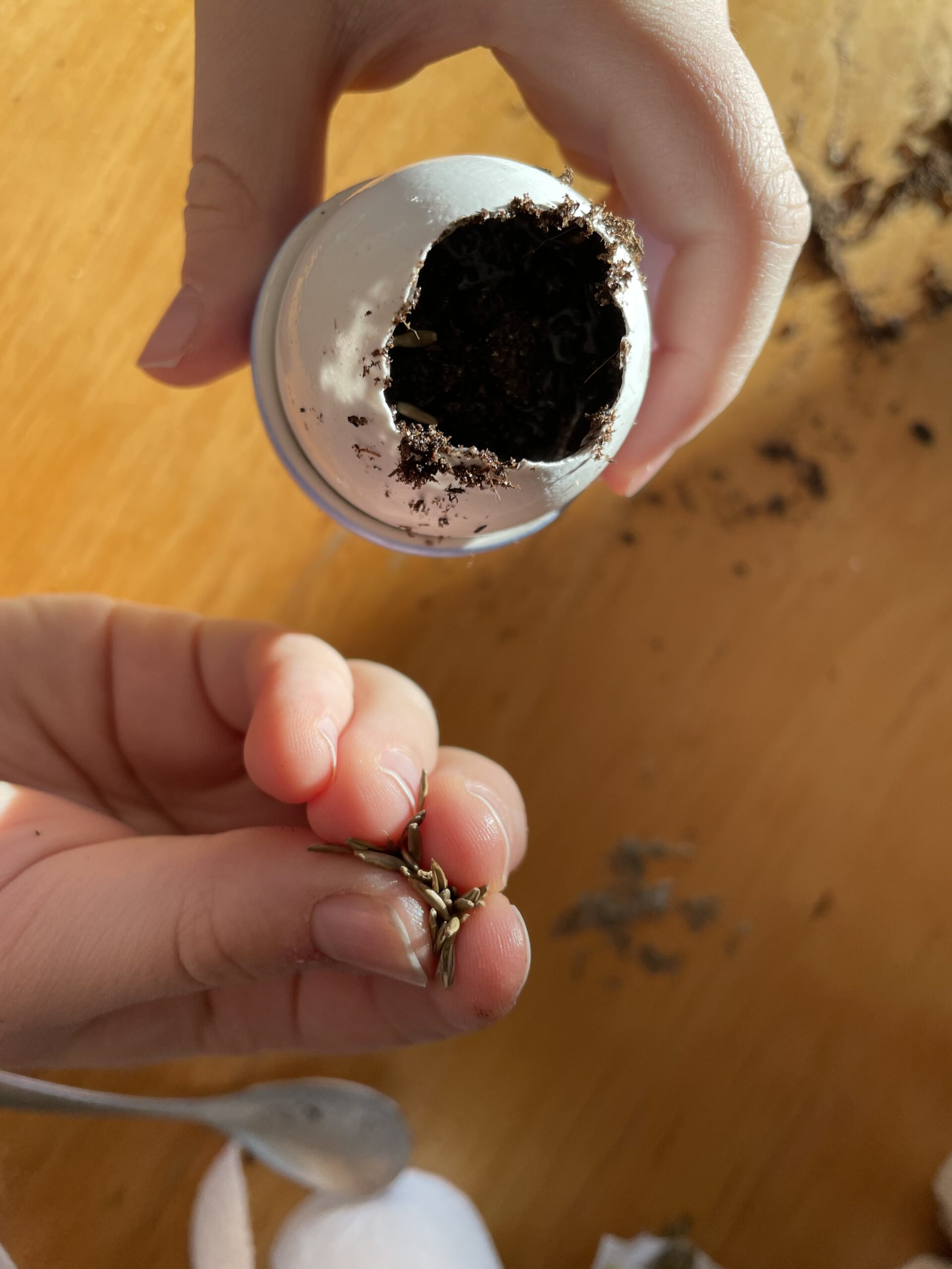 5. Lisa seemned. Seemnete peale pane väike kiht mulda. Kui mulda pudenes munakoore välisele poolele, pühi või loputa see veega maha.