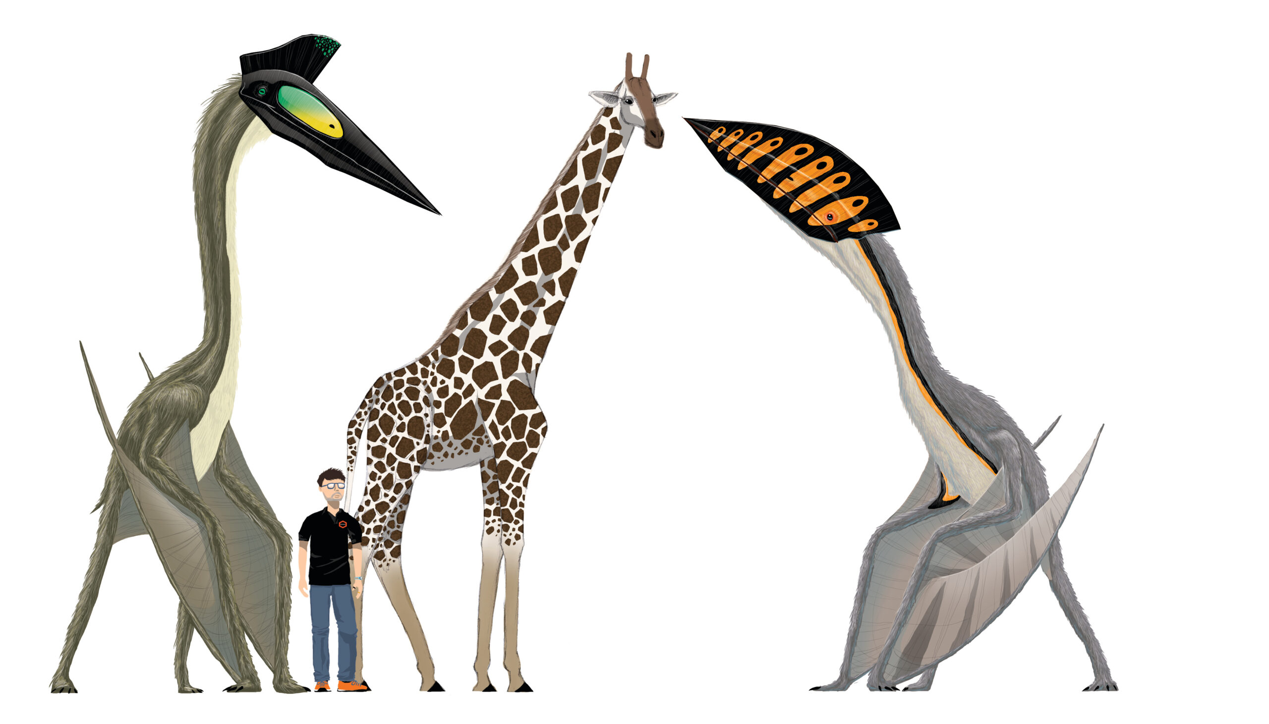 Pterosauruste seas olid suurimad teadaolevad lennuvõimelised loomad, kellest suurimate tiibade siruulatus (pikkus ühest tiivaotsast teiseni) küündis üle kümne meetri. Kui suurimad neist parajasti maa peal kõndisid, olid nad oma pika kaelaga väiksemate kaelkirjakute mõõtu. Aga seda on väga raske ette kujutada, sest me lihtsalt ei ole harjunud mõtlema nii suurtest lendavatest olenditest. Kui sul on huvi seda täpsemalt ette kujutada, võid küsida vanematelt mõõdulinti ja proovida mõõta 11 meetri pikkust vahemikku. See 11 meetrit on ühe suurima pterosauruse, Quetzalcoatlus’e suurimate isendite tiibade siruulatus.